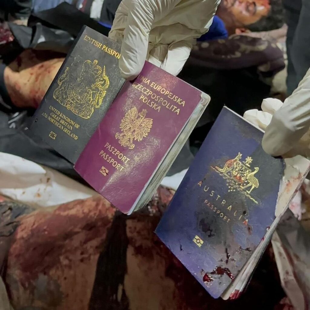 The Aid workers killed in Israeli airstrike were citizens of the UK, Australia and Poland, according to photos from the scene. Their Palestinian driver was also killed