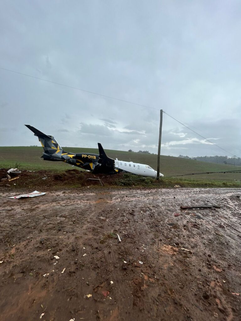 Learjet 75 suffers a runway excursion after attempting to land at Erechim Airport in Brazil. pic.twitter.com/4kHVajlUEF