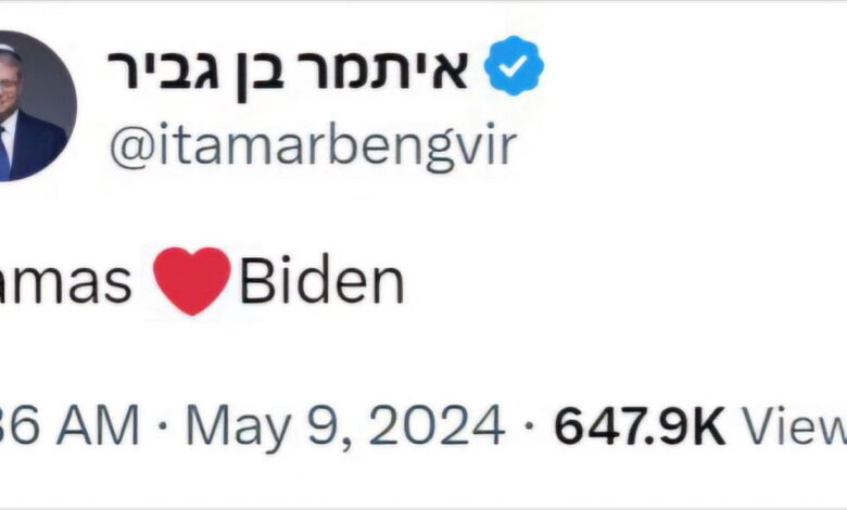 Hamas loves Biden : Israeli National Security Minister Ben Gvir says on X