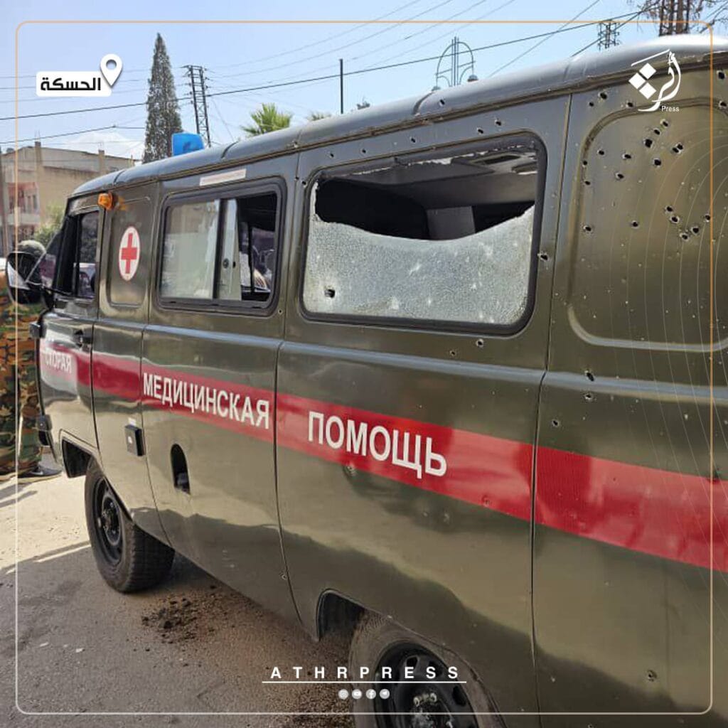The source said that the Russian force was distributing vaccines in front of a medical center in Hasakah city when it was attacked