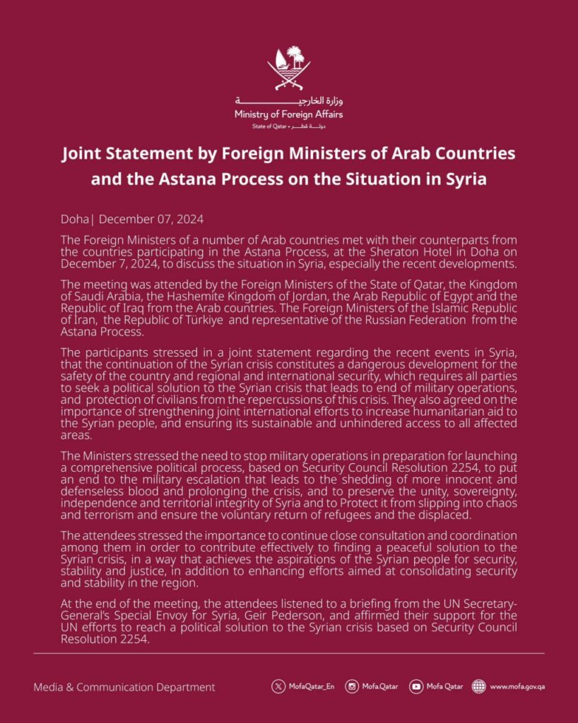 Breaking : A Joint Statement for Five Arab states, Iran, Turkey and Russia for solution in Syria