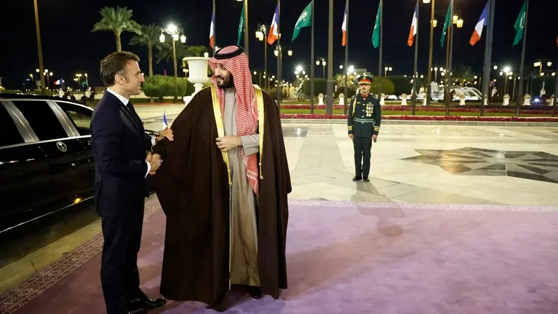 Crown Prince Mohammed bin Salman welcomed French President Emmanuel Macron to Riyadh on Monday for a three-day state visit.