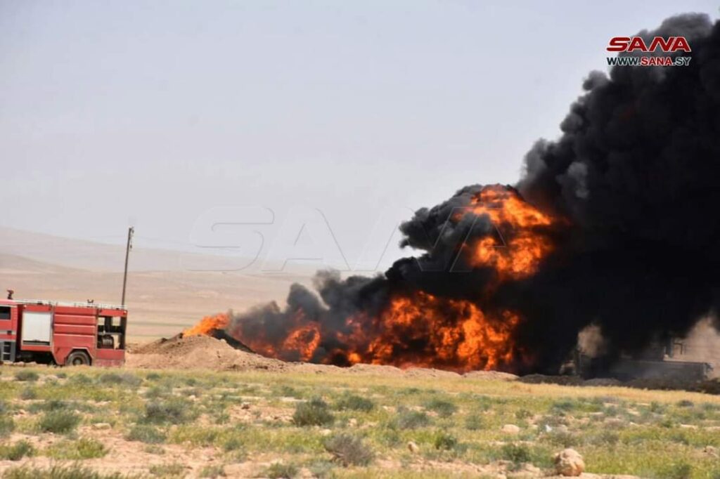 A large fire broke out in one of the crude oil transport lines in the central Syrian province of Homs.
